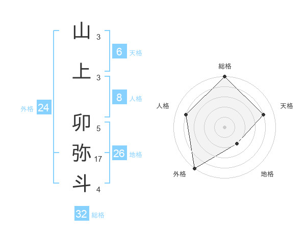 山上 卯弥斗さんの総格は32画の5点!