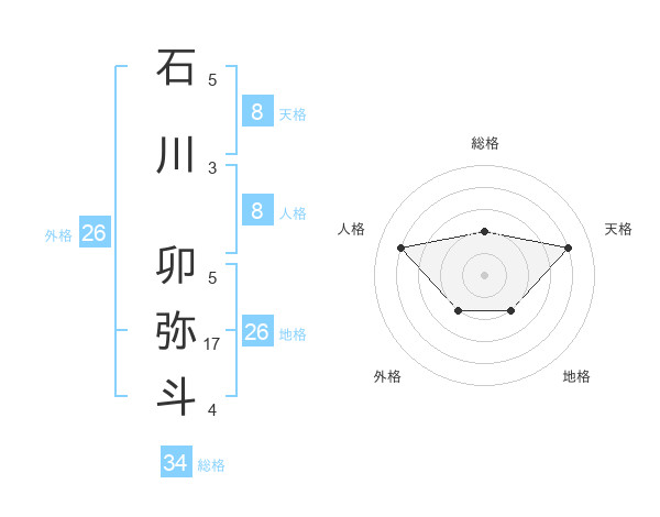 石川 卯弥斗さんを姓名の画数から五運を鑑定