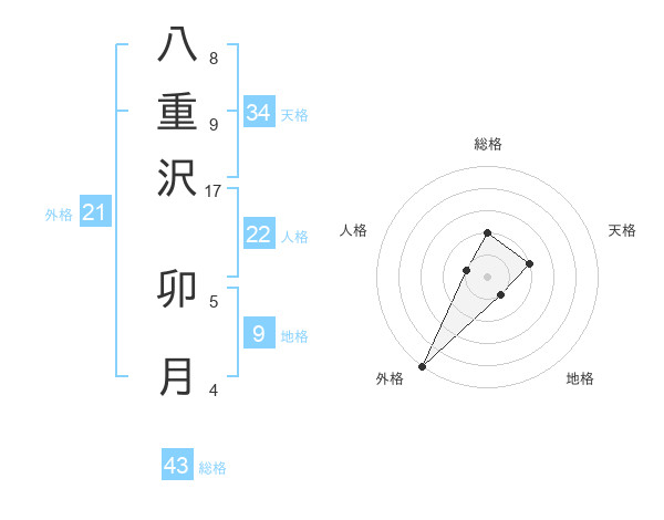 八重沢 卯月さんを姓名の画数から五運を鑑定