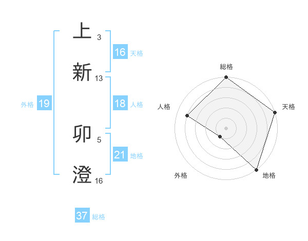 上新 卯澄さんの天格は16画の5点!