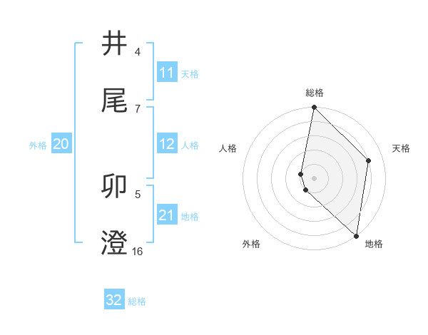 井尾 卯澄さんを姓名の画数から五運を鑑定