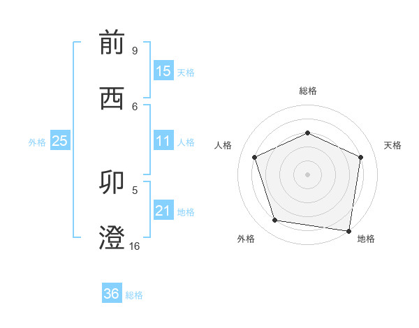 前西 卯澄さんの天格は15画の4点!