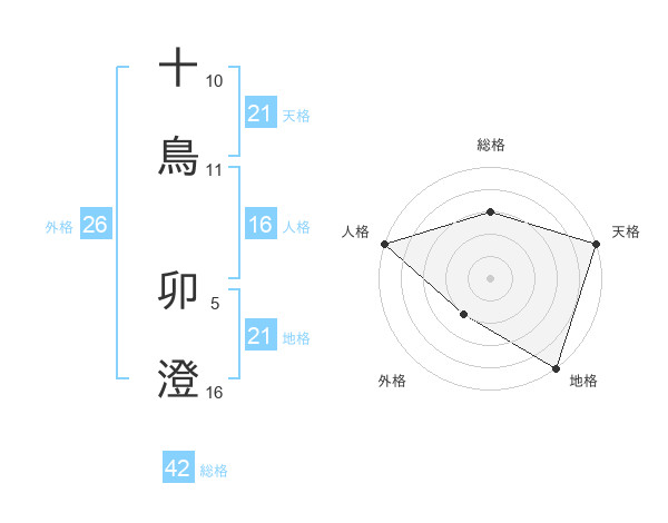 十鳥 卯澄さんを姓名の画数から五運を鑑定