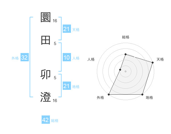 圜田 卯澄さんを姓名の画数から五運を鑑定