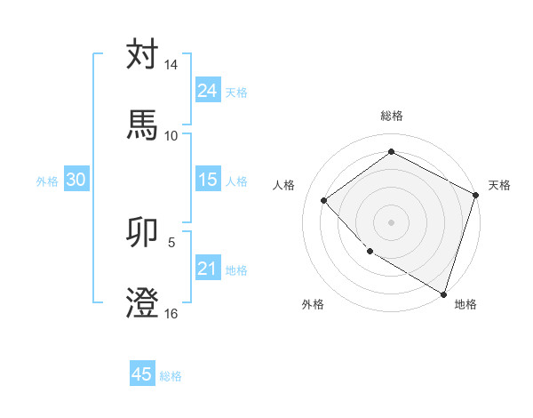 対馬 卯澄さんを姓名の画数から五運を鑑定