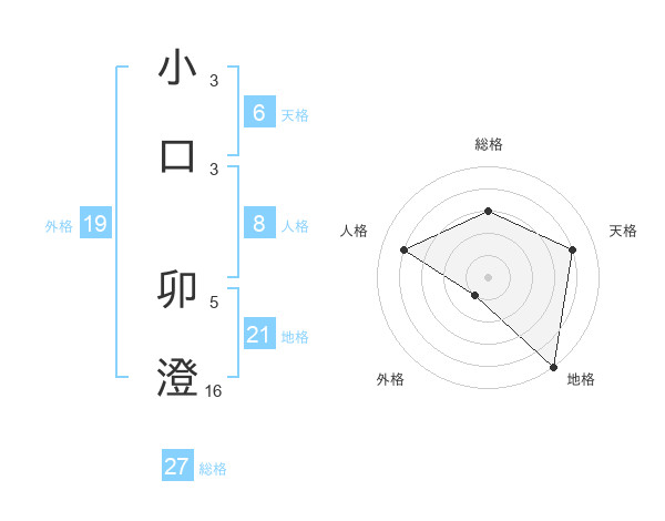 小口 卯澄さんの総格は27画の3点!