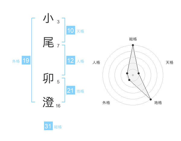 小尾 卯澄さんの総格は31画の5点!