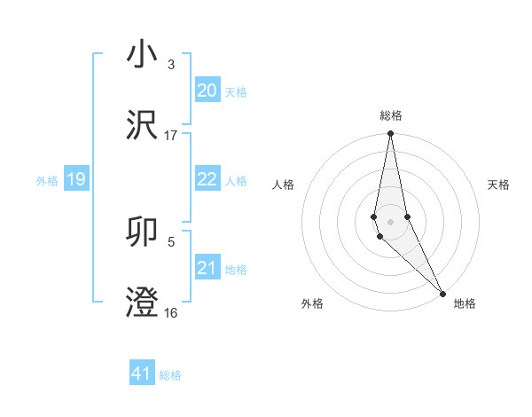 小沢 卯澄さんの外格は19画の1点!