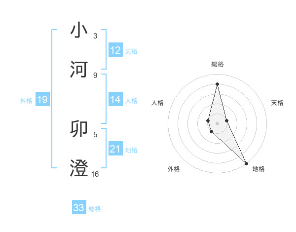 小河 卯澄さんの総格は33画の4点!