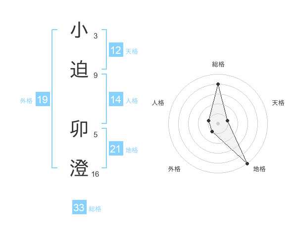小迫 卯澄さんの総格は33画の4点!