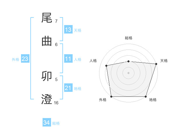 尾曲 卯澄さんの地格は21画の5点!
