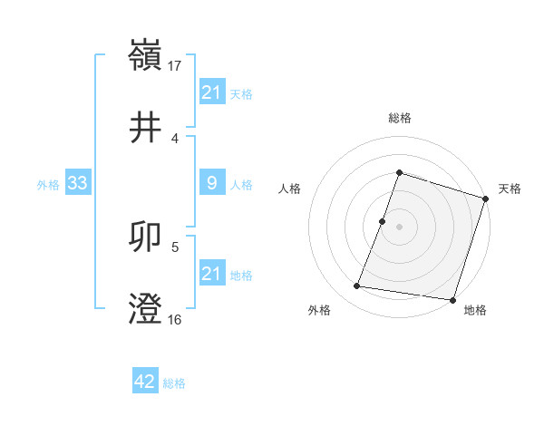 嶺井 卯澄さんの天格は21画の5点!