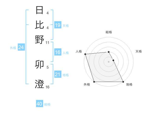 日比野 卯澄さんを姓名の画数から五運を鑑定