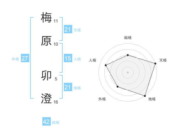 梅原 卯澄さんの天格は21画の5点!