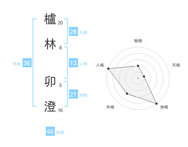 櫨林 卯澄さんを姓名の画数から五運を鑑定