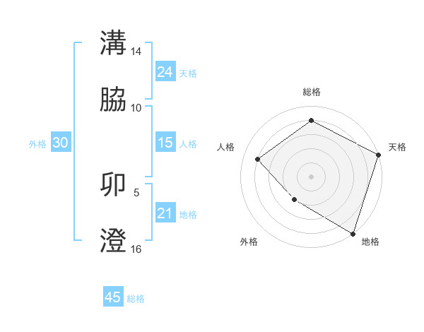 溝脇 卯澄さんの総格は45画の4点!