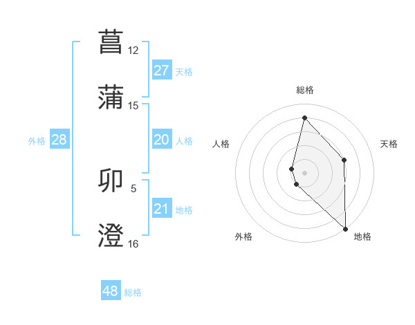 菖蒲 卯澄さんの総格は48画の4点!