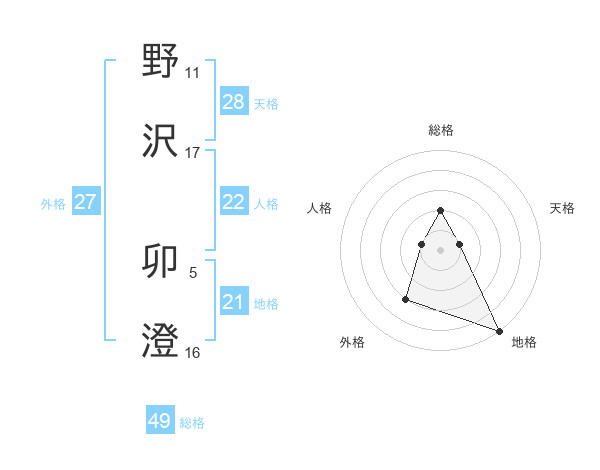 野沢 卯澄さんの地格は21画の5点!