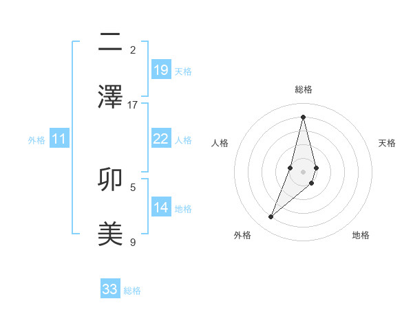 二澤 卯美さんの総格は33画の4点!
