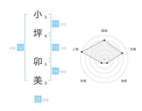 小坪 卯美さんの総格は25画の4点!