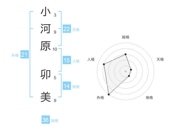 小河原 卯美さんの天格は22画の1点!