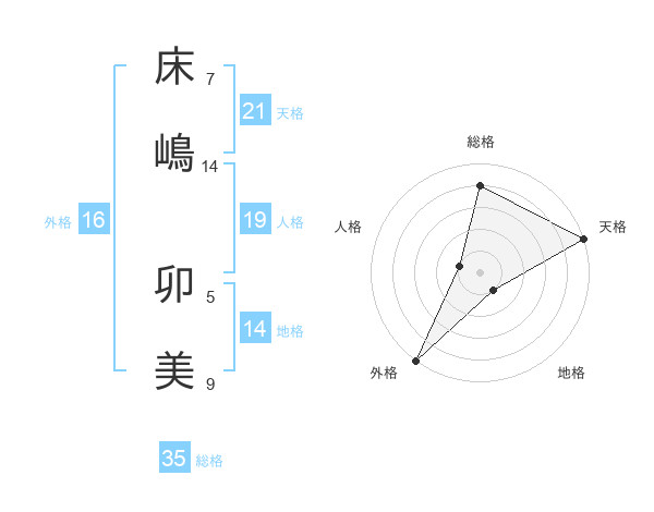 床嶋 卯美さんを姓名の画数から五運を鑑定