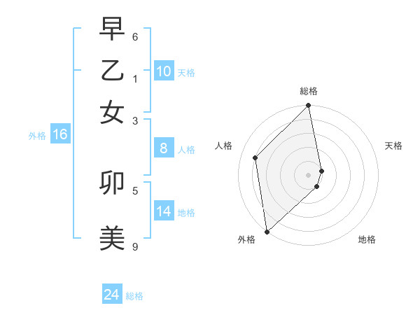 早乙女 卯美さんの外格は16画の5点!