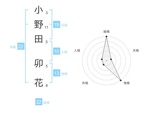 小野田 卯花さんを姓名の画数から五運を鑑定