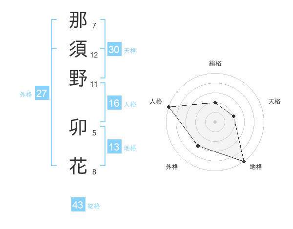 那須野 卯花さんを姓名の画数から五運を鑑定