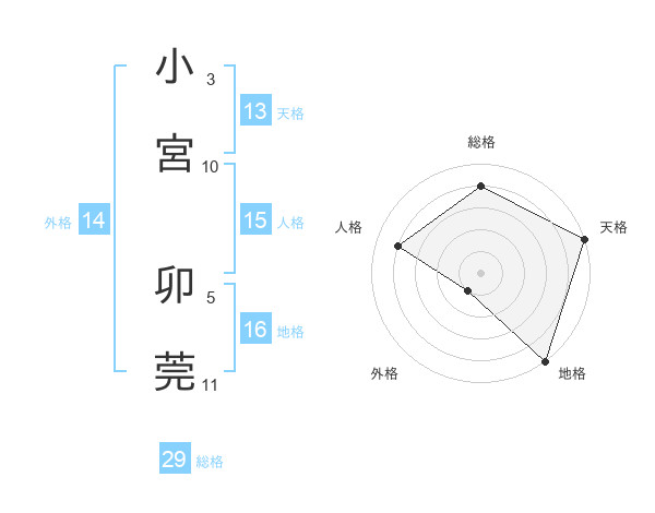 小宮 卯莞さんの天格は13画の5点!