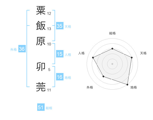 粟飯原 卯莞さんを姓名の画数から五運を鑑定
