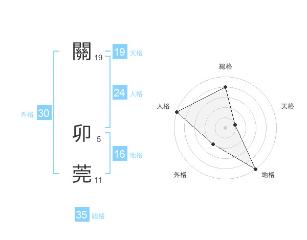 關 卯莞さんの総格は35画の4点!