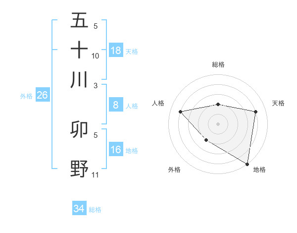 五十川 卯野さんを姓名の画数から五運を鑑定