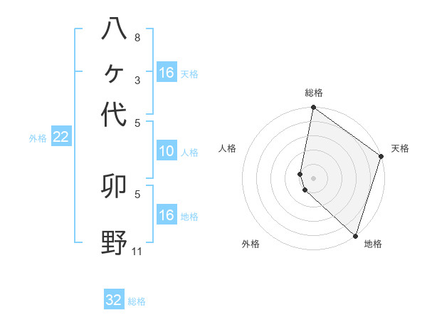 八ヶ代 卯野さんを姓名の画数から五運を鑑定