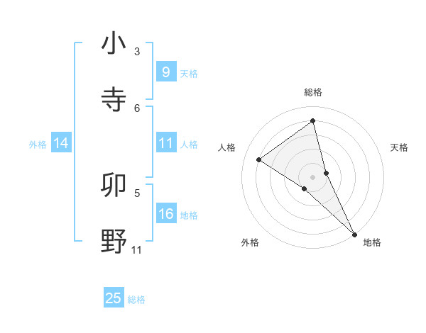 小寺 卯野さんを姓名の画数から五運を鑑定