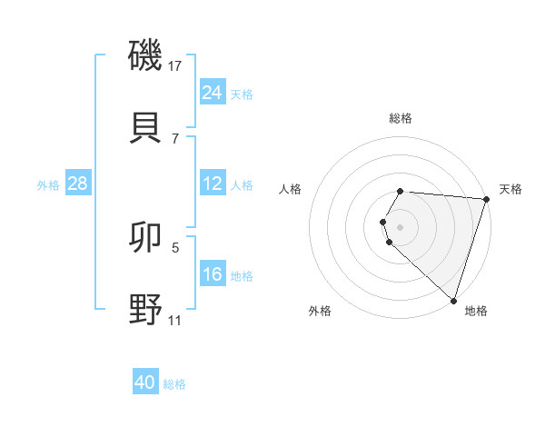 磯貝 卯野さんを姓名の画数から五運を鑑定