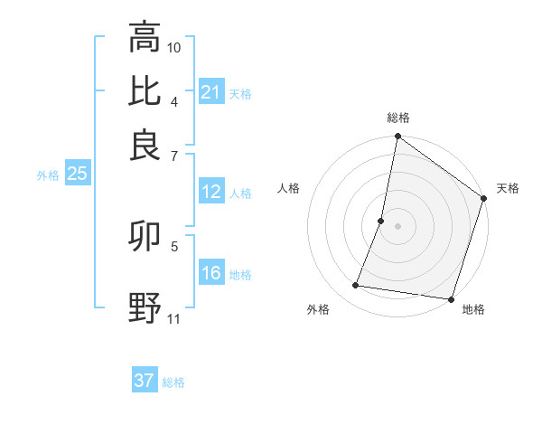 高比良 卯野さんの総格は37画の5点!