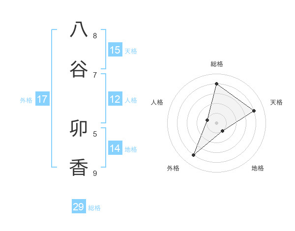 八谷 卯香さんの天格は15画の4点!