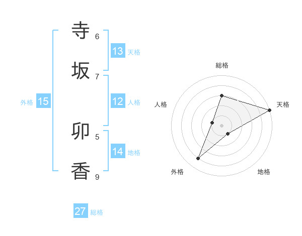 寺坂 卯香さんの天格は13画の5点!