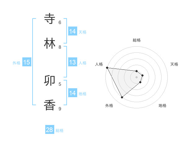 寺林 卯香さんの総格は28画の1点!