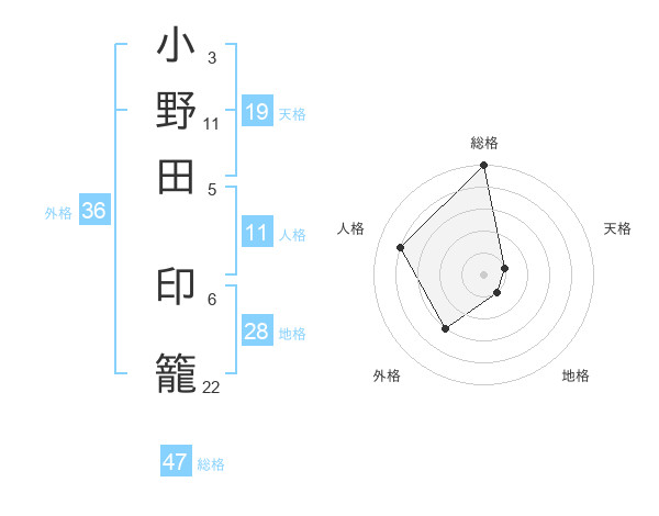 小野田 印籠さんを姓名の画数から五運を鑑定