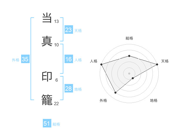 当真 印籠さんの総格は51画の3点!