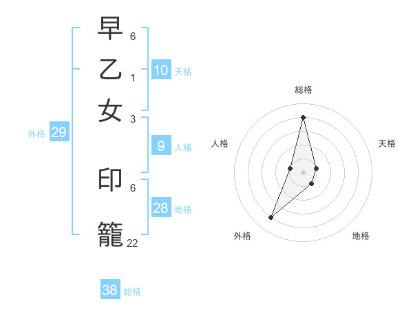 早乙女 印籠さんを姓名の画数から五運を鑑定