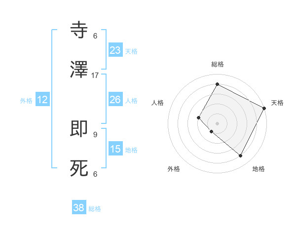 寺澤 即死さんの天格は23画の5点!