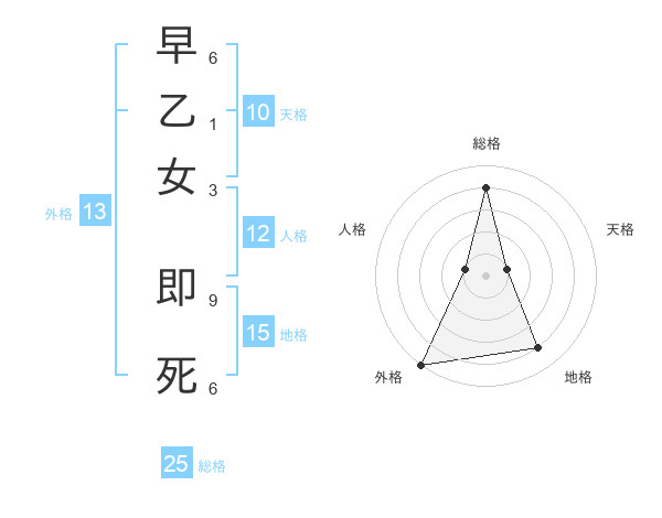 早乙女 即死さんの外格は13画の5点!