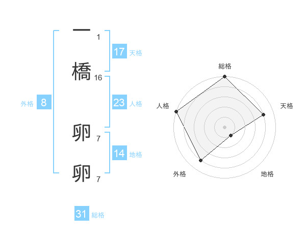 一橋 卵卵さんを姓名の画数から五運を鑑定