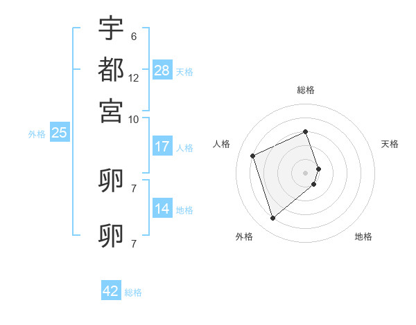 宇都宮 卵卵さんを姓名の画数から五運を鑑定