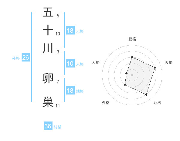 五十川 卵巣さんを姓名の画数から五運を鑑定