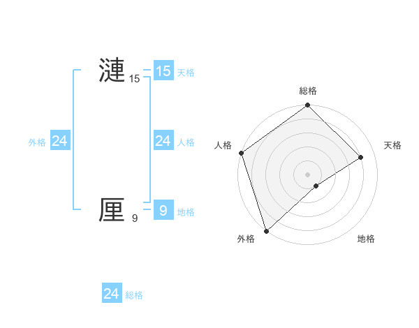 漣 厘さんの外格は24画の5点!