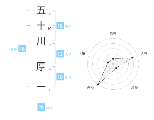 五十川 厚一さんを姓名の画数から五運を鑑定